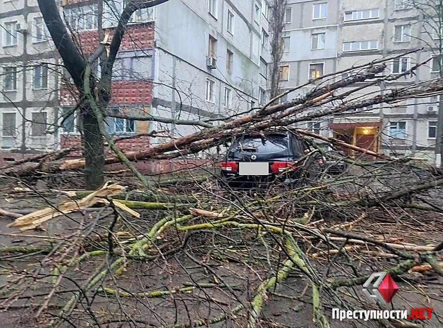 В одном случае дерево упало во дворе многоэтажки по адресу Колодезная, 16. Сухой тополь упал на припаркованный автомобиль, перед этим повредив соседнее дерево, на котором сломал несколько крупных веток.