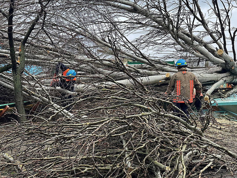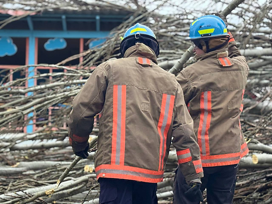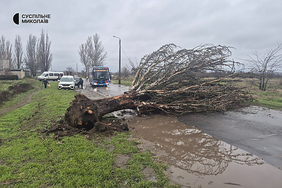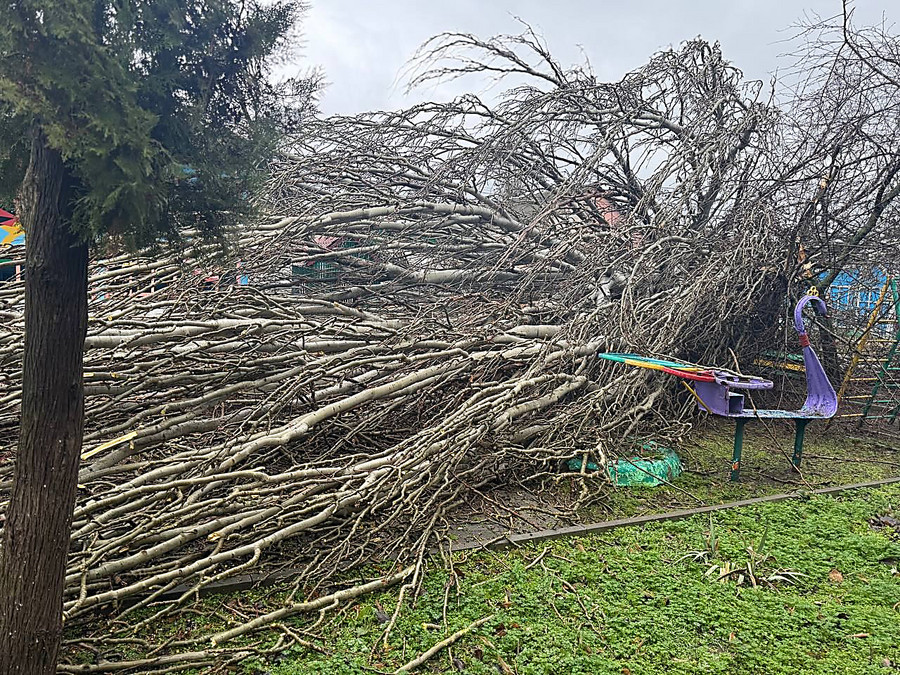 «Из-за осложнения погодных условий на территории города фиксируются случаи падения деревьев и крупных веток, создающих опасность для людей, зданий и транспортных средств. К работам привлечены спасатели 10-го взвода Государственного горноспасательного отряда ГСЧС Украины. Специалисты проводят аварийное распиливание поваленных деревьев, расчищают зоны и придомовые территории, восстанавливая безопасные условия передвижения по городу», — сообщили в Управлении по вопросам чрезвычайных ситуаций и гражданской защиты населения Николаевского городского совета.